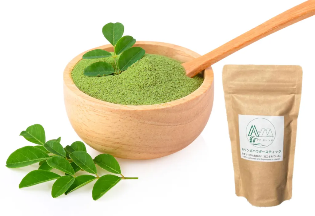 日本で栽培・製造されたモリンガ(スーパーフード)。90種以上の栄養素が含まれています。